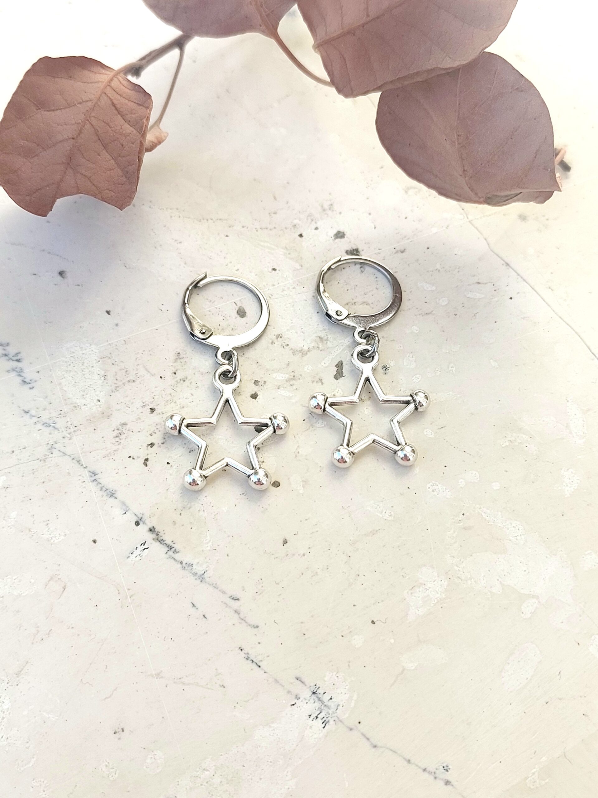 Χειροποίητα ατσάλινα σκουλαρίκια με αστέρι από ασήμι 925.