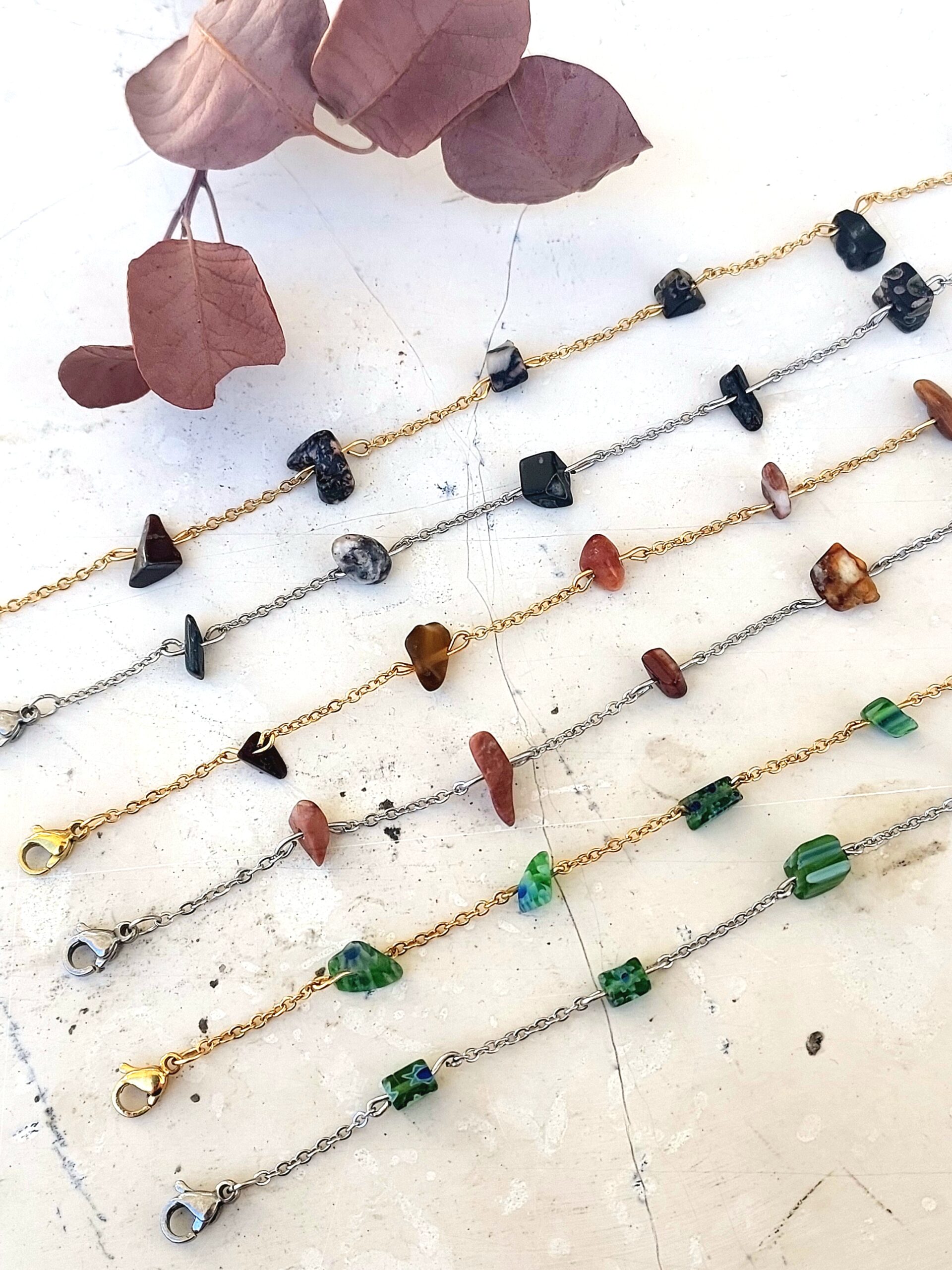 Χειροποίητο ατσάλινο βραχιόλι με ημιπολύτιμες πέτρες.