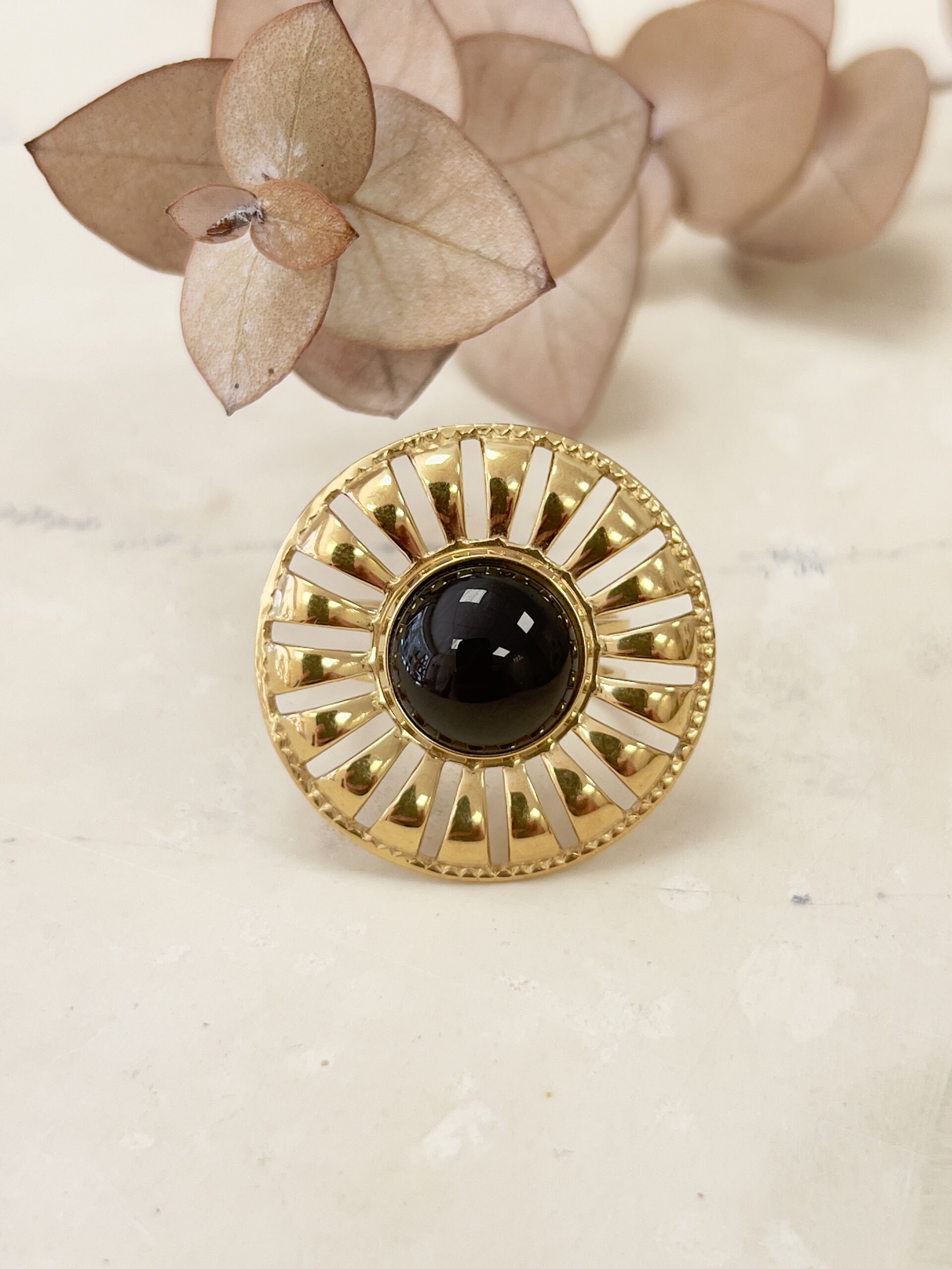 Χρυσό ατσάλινο δαχτυλίδι με μαύρη πέτρα.