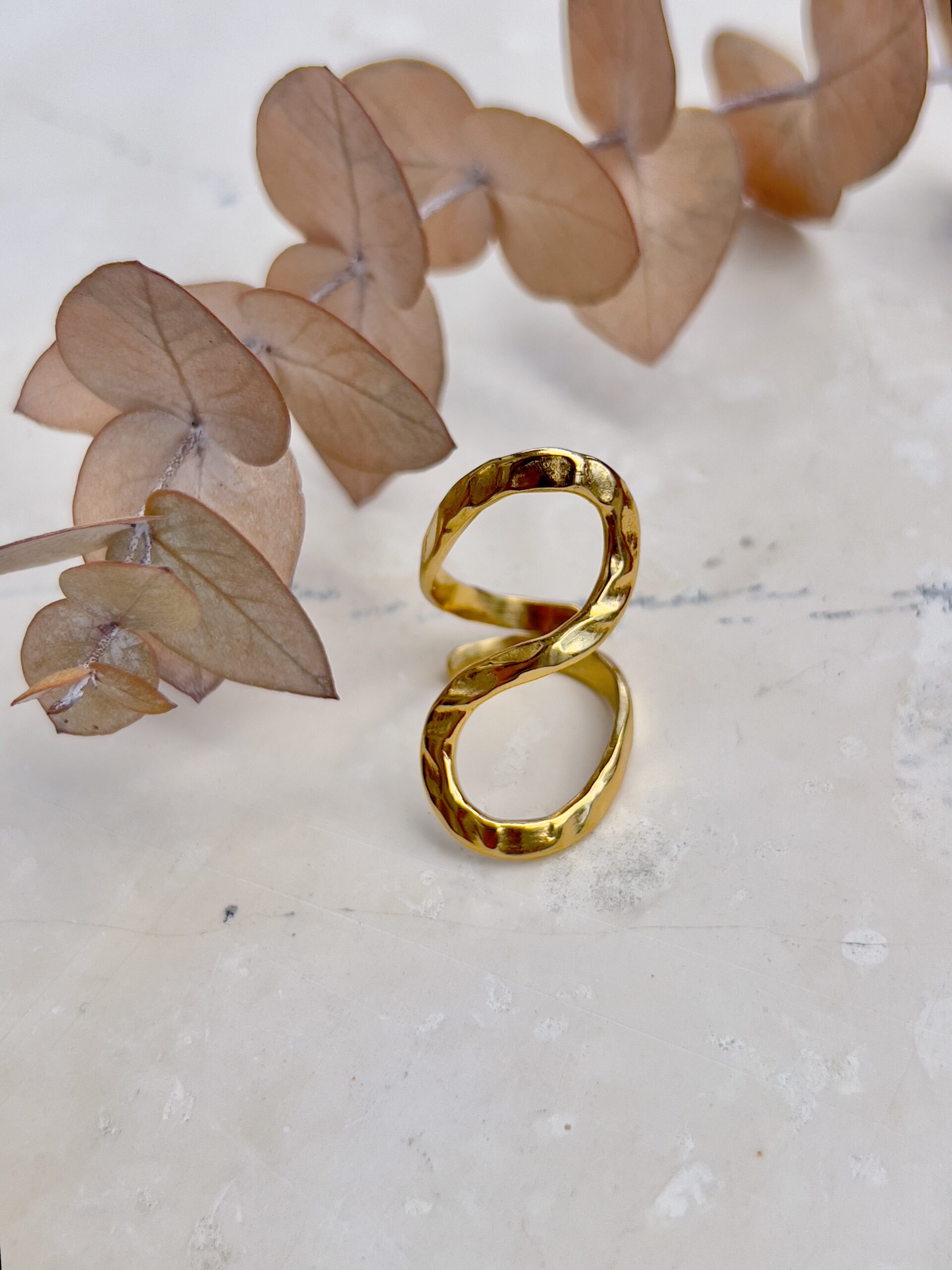 Χρυσό ατσάλινο δαχτυλίδι. Διαθέτει αυξομείωση.