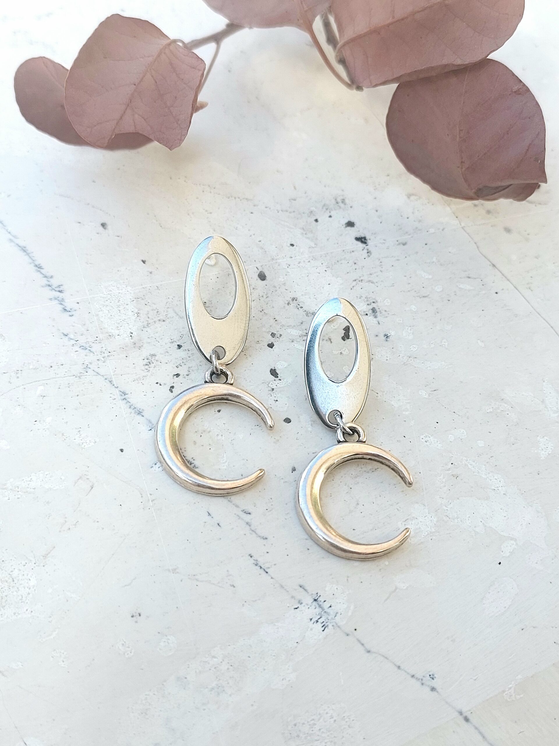 Χειροποίητα ατσάλινα σκουλαρίκια, με μισοφέγγαρο από ασήμι 925.