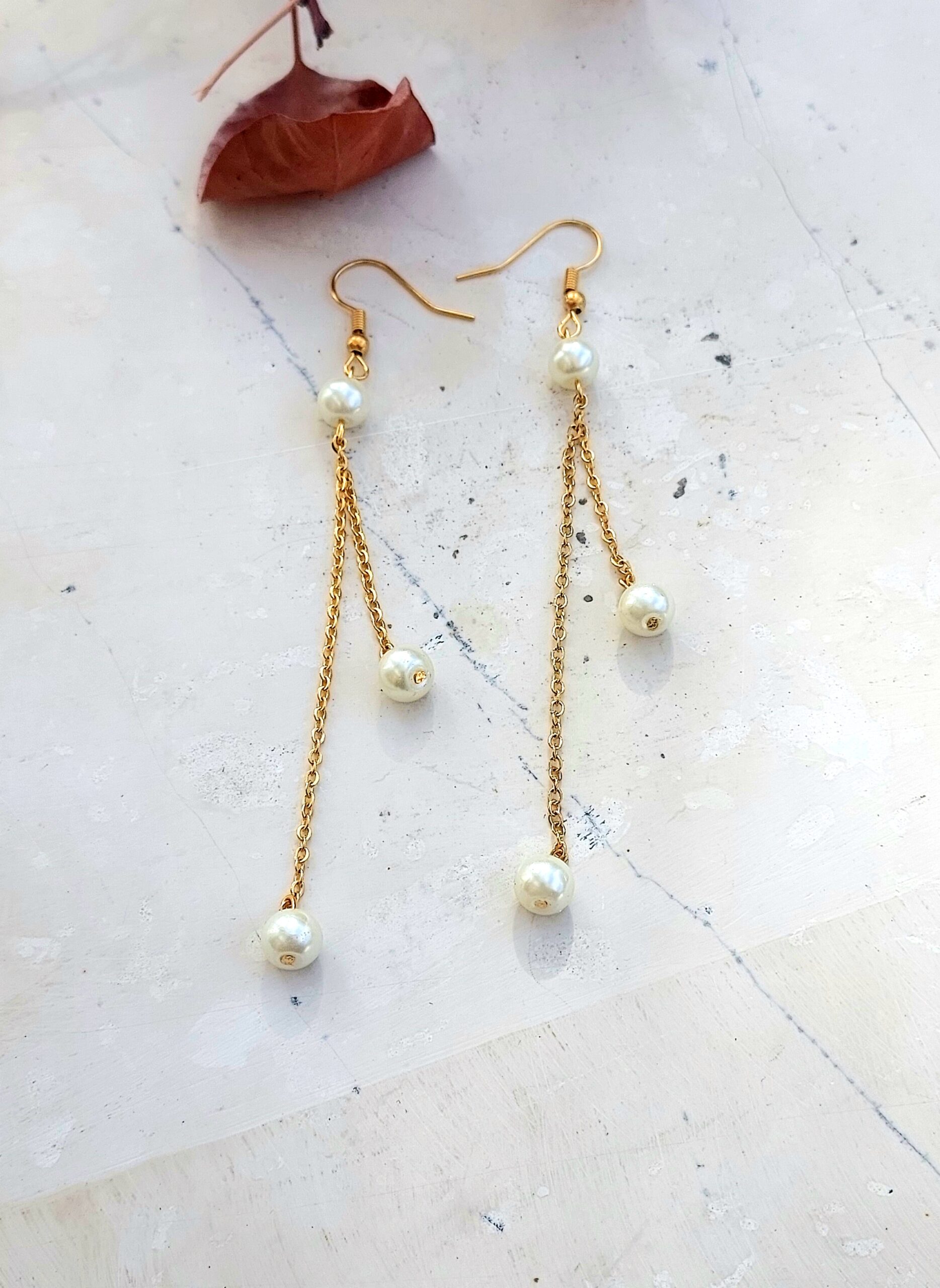 Χειροποίητα ατσάλινα σκουλαρίκια με πέρλες.