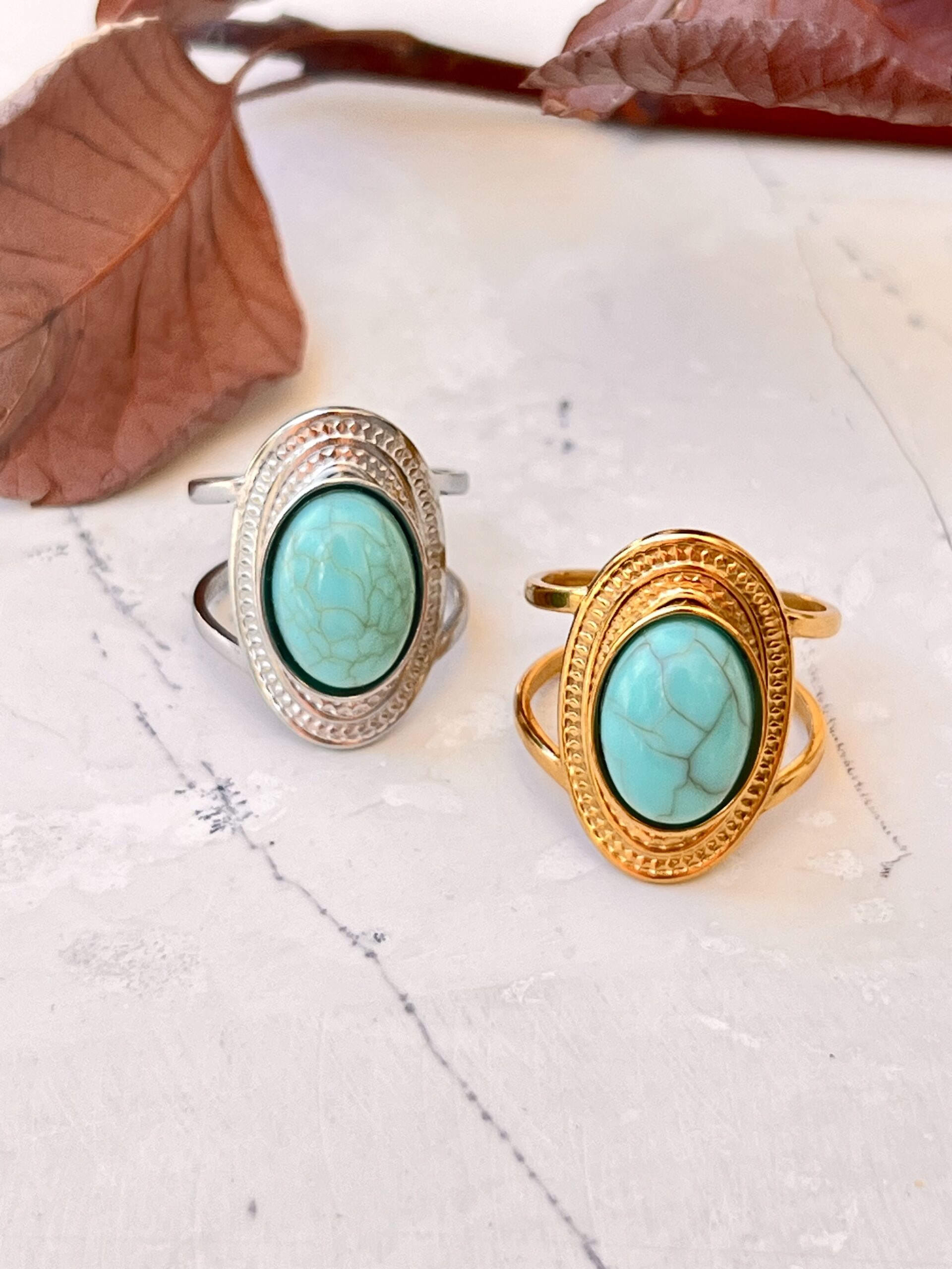 Ατσάλινο δαχτυλίδι με ημιπολύτιμη πέτρα από χαολίτη.