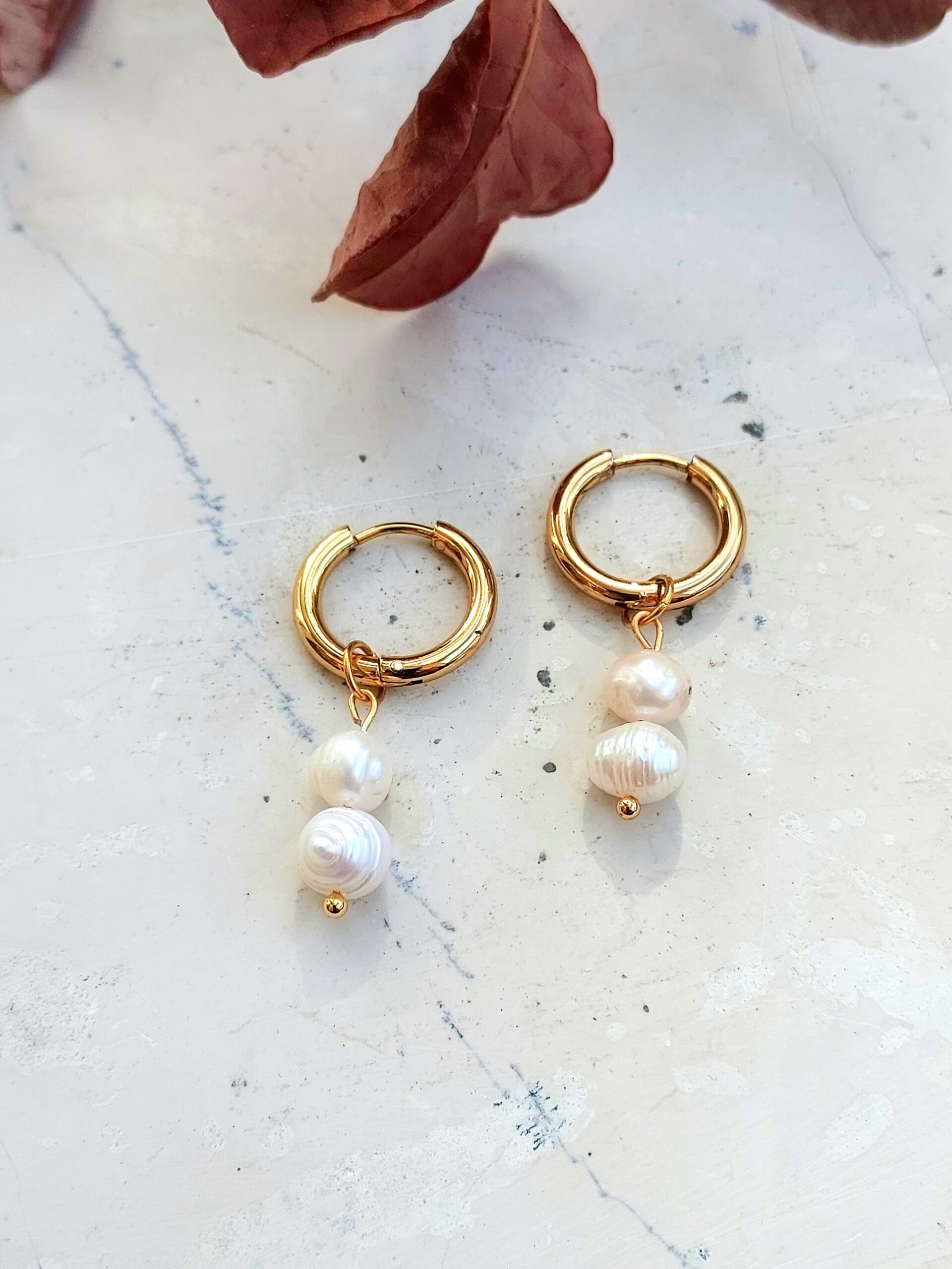 Χειροποίητα ατσάλινα σκουλαρίκια με ακατέργαστες πέρλες.
